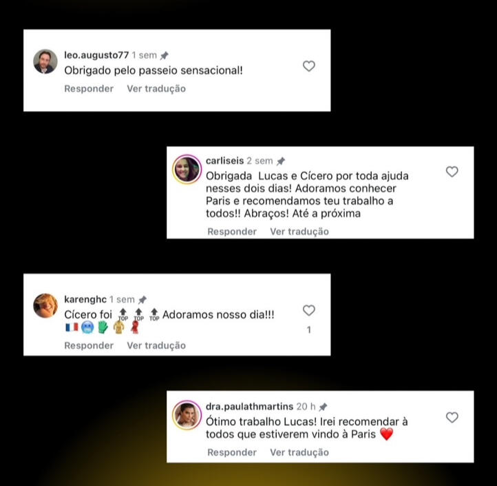 Desde 2019, trabalho como guia turístico, ajudando brasileiros a descobrirem Paris de uma forma inesquecível!Estou aqui para ajudar você a explorar Paris, e registar todos o momentos com as melhores fotos, de uma forma que vai além do óbvio.